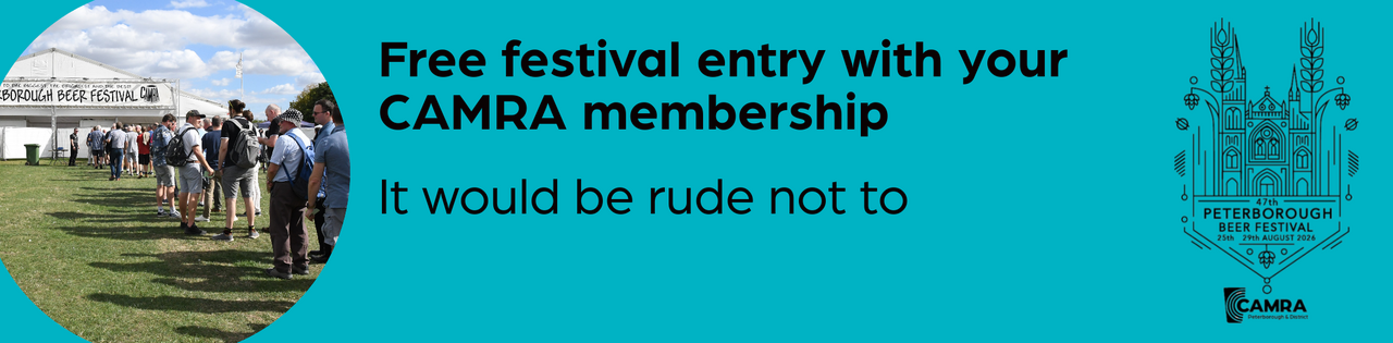 The logo for the 2026 Peterborough Beer Festival, a stylised depiction of the Peterborough Cathedral